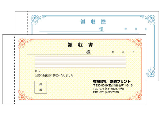 当社では、地域の名所や特産物をデザインした領収書をオーダーで受けております。